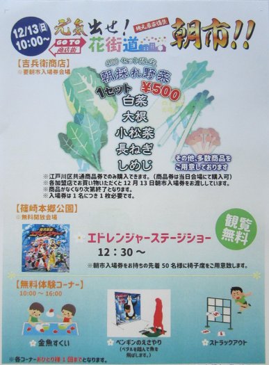 12月13202010:00より地元農家の朝採れ野菜販売(入場券が必要です) 無料体験コーナー開催 12:30よりエドレンジャーショー カテゴリー: お知らせ2020.12.13投稿ナビゲーション次へ次の投稿:日本ローカルヒーロー祭関連記事【中止】10月26日(日)凄いもん祭りにエドレンジャー登場!2025.10.1411月22日(土)産業ときめきフェア ものづくりヒーローショー!2025.10.08エドレンジャーを飛躍させたい!!クラウドファンディングに挑戦!2025.10.0210月12日(日)江戸川区民まつり エドレンジャー登場!2025.09.30【重要】タワーホール船堀の休館・事務局夏季休業等のお知らせ2025.08.137月26日(土)27日(日)第42回チャリティー盆踊り大会 26日午後4時半からエドレンジャー登場!2025.07.22
