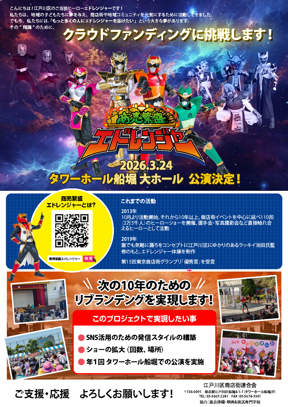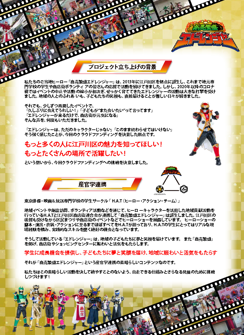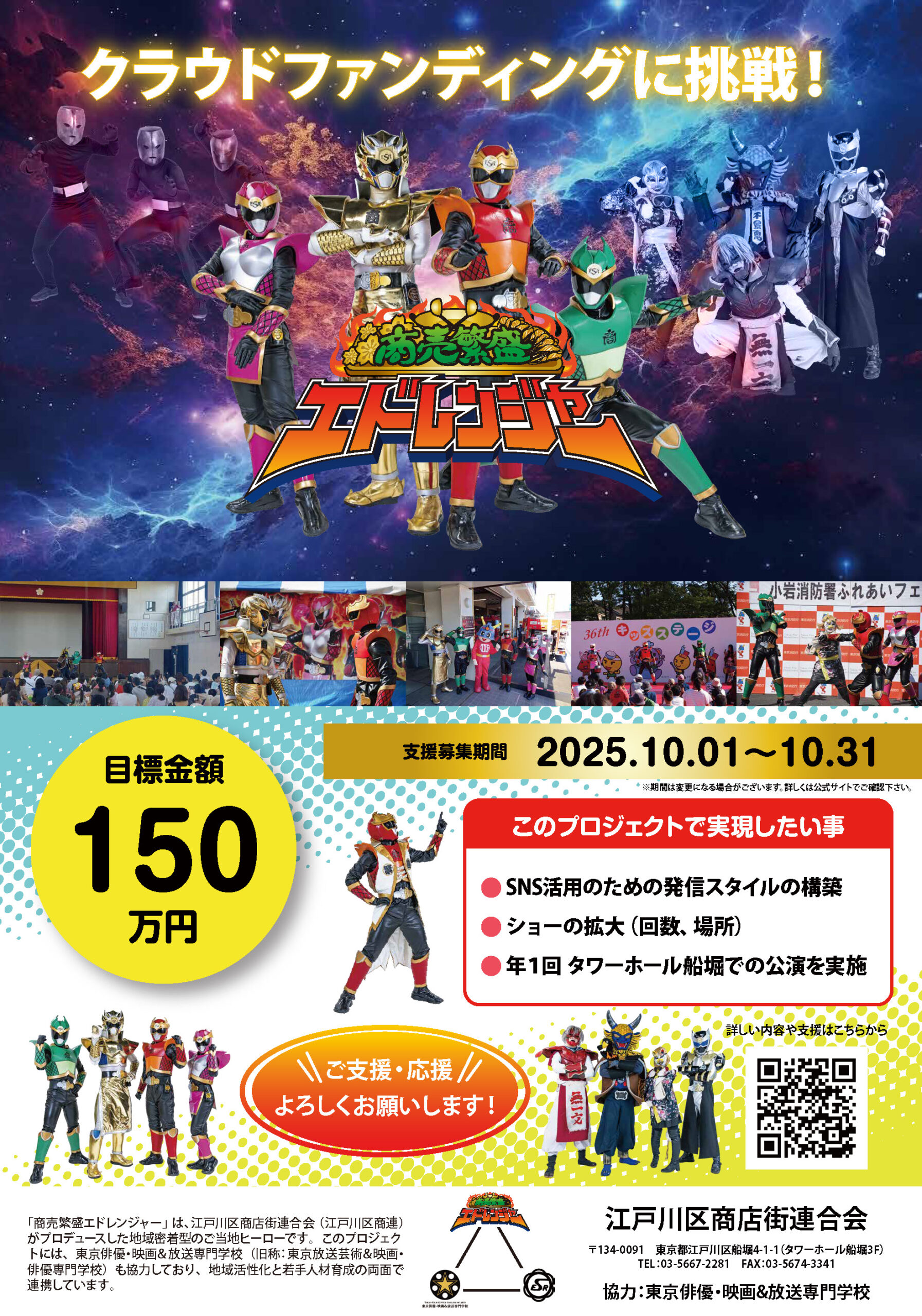 江戸川区のご当地ヒーロー「エドレンジャー」は、2013年の誕生以来、地域の商店街やイベントに登場し、