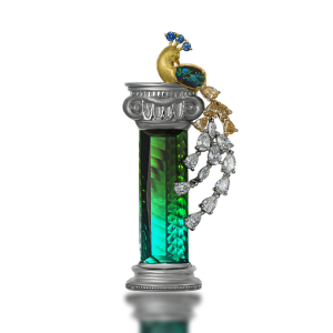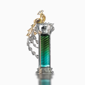 こちらはバイカラートルマリンという宝石です。ギリシャにあるイオニア形式の神殿の柱をモチーフにしています。